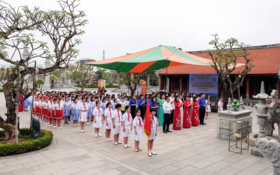 Chỉ đạo Liên đội tổ chức Lễ kết nạp Đội viên cho 120 em học sinh trường Tiểu học Đinh Tiên Hoàng tại Khu tưởng niệm liệt sĩ Nguyễn Đức Cảnh. Buổi lễ diễn ra trong không khí vui tươi, phấn khởi của các em học sinh khi được đứng trong hàng ngũ Đội TNTP Hồ Chí Minh.