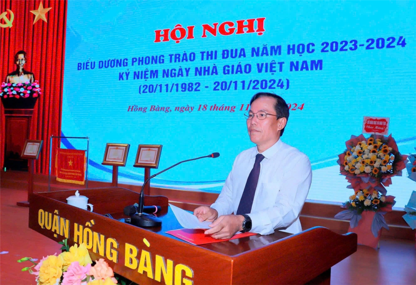 Chiều 18/11/2024, tại Trung tâm Chính trị - Hành chính quận Hồng Bàng, UBND quận long trọng tổ chức Kỷ niệm 42 năm Ngày Nhà giáo Việt Nam (20/11/1982 - 20/11/2024); biểu dương phong trào thi đua Hai tốt và vinh danh tập thể nhà trường, các thầy, cô giáo đã có thành tích xuất sắc trong năm học 2023 - 2024.