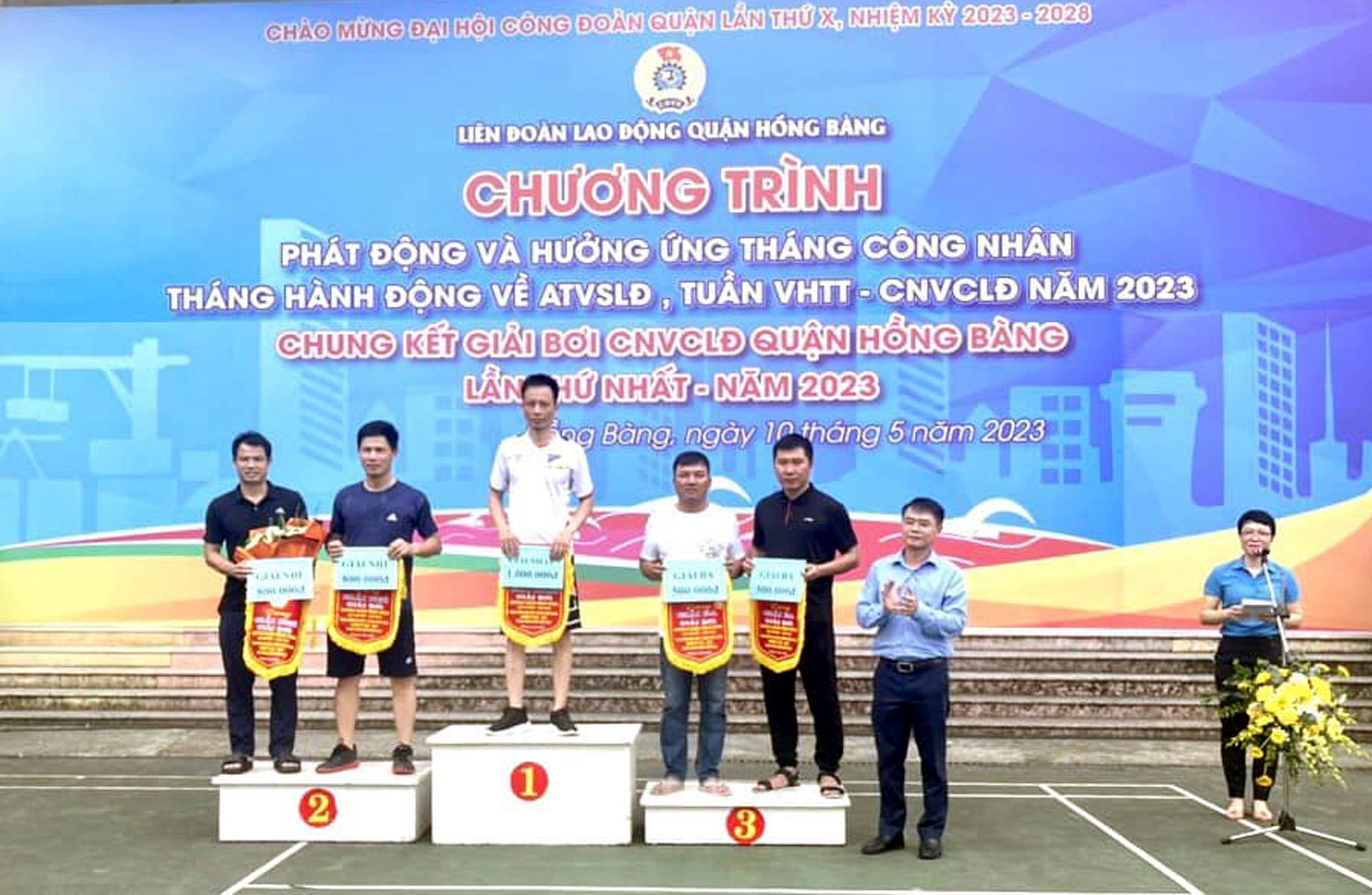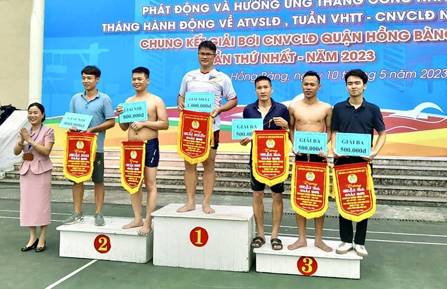 🌷 Trong không khí thi đua sôi nổi của công nhân viên chức lao động quận nói chung, công đoàn giáo viên trường Tiểu học Đinh Tiên Hoàng nói riêng chào mừng Lễ hội Hoa phượng đỏ Hải Phòng năm 2023; Chào mừng các ngày lễ lớn trong tháng 5 và chào mừng tháng công nhân. Thực hiện Kế hoạch tổ chức Chương trình phát động và hưởng ứng Tháng công nhân; Tháng hành động vệ sinh an toàn lao động, tuần VHTT- CNVCLĐ năm 2023; Chung kết giải bơi CNVCLĐ quận Hồng Bàng năm 2023, Công đoàn Trường Tiểu học Đinh Tiên Hoàng đã chọn cử hai đồng chí Vũ Ba Duy, đồng chí Đặng Xuân Hiếu tham gia giải bơi.
