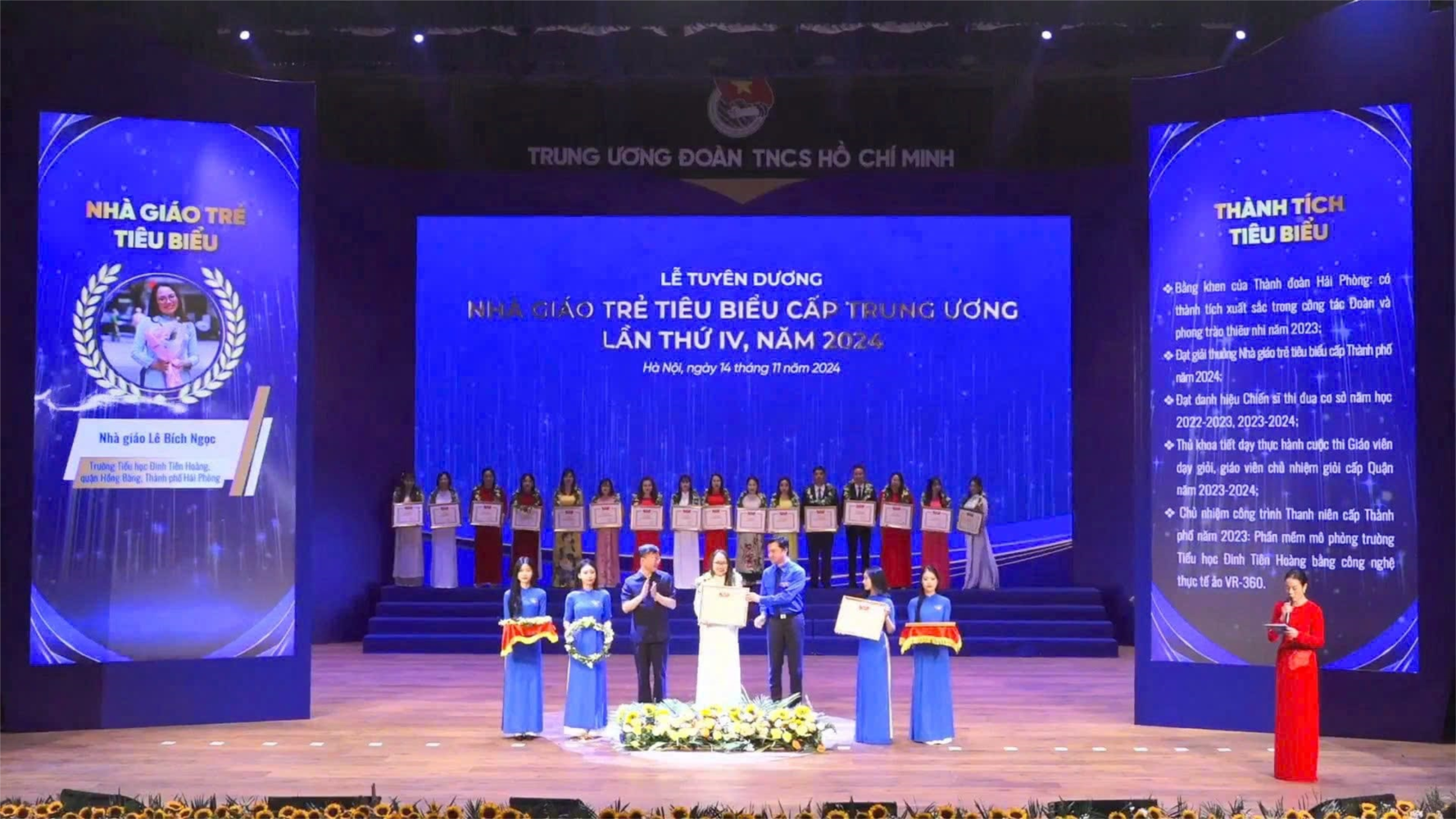 Nhân dịp kỷ niệm 42 năm ngày Nhà giáo Việt Nam (20/11/1982-2024), tối 14/11 vừa qua, tại Hà Nội, Trung ương Đoàn TNCS Hồ Chí Minh tổ chức Lễ tuyên dương Nhà giáo trẻ tiêu biểu cấp Trung ương lần thứ IV- năm 2024.