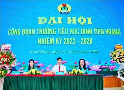 🍓Được sự nhất trí của Ban thường vụ LĐLĐ quận Hồng Bàng và Đảng ủy Trường TH Đinh Tiên Hoàng, sáng ngày 01/12/2022, Ban chấp hành Công đoàn Trường Tiểu học Đinh Tiên Hoàng, nhiệm kỳ 2017 - 2022 tổ chức Đại hội Công đoàn Trường Tiểu học Đinh Tiên Hoàng, nhiệm kỳ 2023 - 2028. Đại hội có nhiệm vụ tổng kết, đánh giá kết quả phong trào CNVCLĐ và hoạt động công đoàn nhiệm kỳ 2017 - 2022, chỉ ra những tồn tại, hạn chế, nguyên nhân và bài học kinh nghiệm trong hoạt động công đoàn; quyết định phương hướng, nhiệm vụ, giải pháp chủ yếu cho nhiệm kỳ 2023 - 2028; bầu Ban chấp hành và Đại biểu dự đại hội X Công đoàn quận Hồng Bàng, nhiệm kỳ 2023 - 2028.