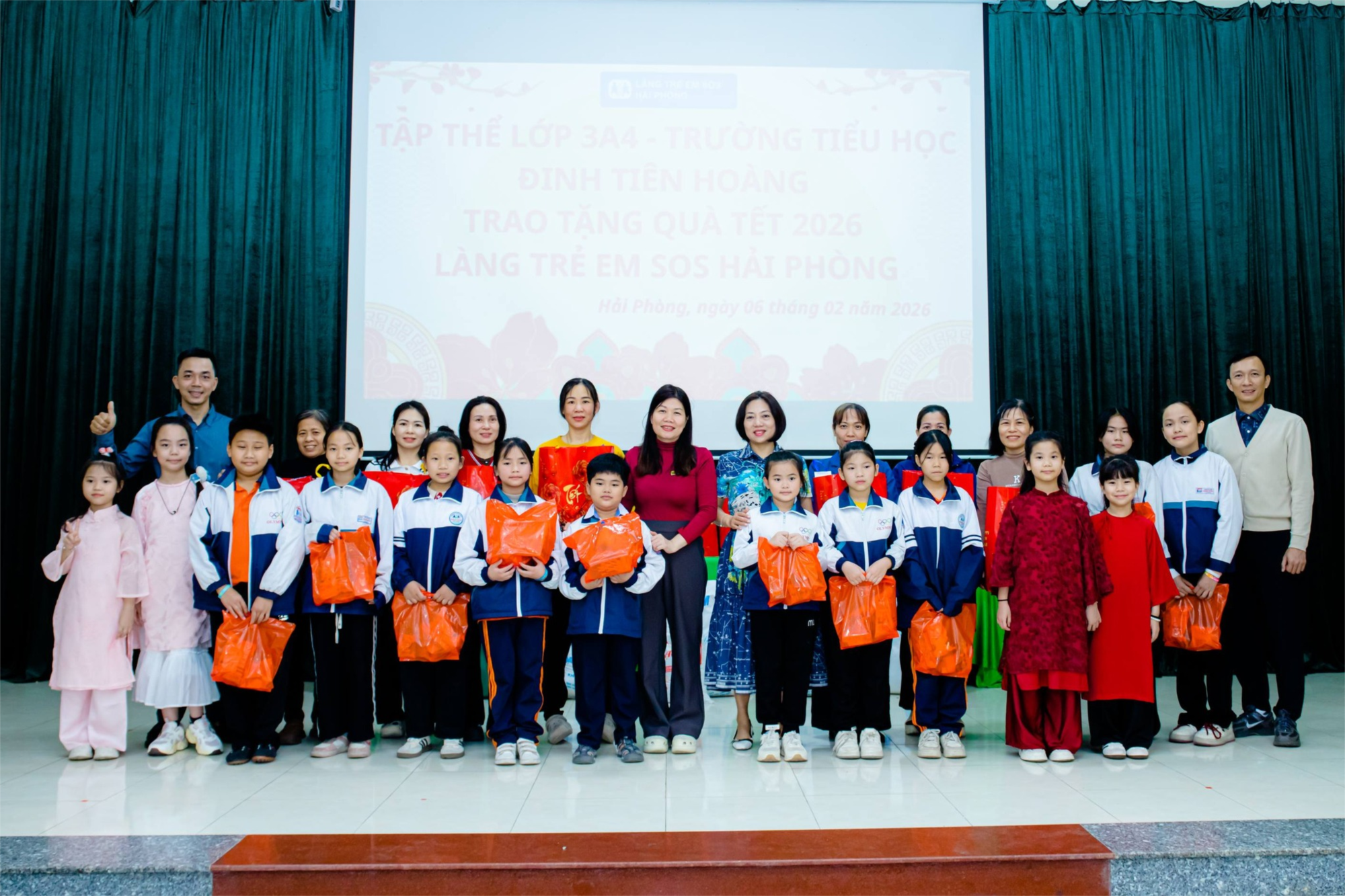 Những ngày cuối năm, khi không khí Xuân Bính Ngọ 2026 đang gõ cửa từng con phố Hải Phòng, cô và trò lớp 3A4 trường Tiểu học Đinh Tiên Hoàng cùng các bậc cha mẹ học sinh đã có một chuyến đi đầy ý nghĩa đến thăm Làng trẻ mồ côi SOS Hải Phòng. Chuyến xe chở theo những phần quà nhỏ xinh, những cuốn sách, bộ đồ dùng học tập và trên hết là tình yêu thương chân thành của cả tập thể.