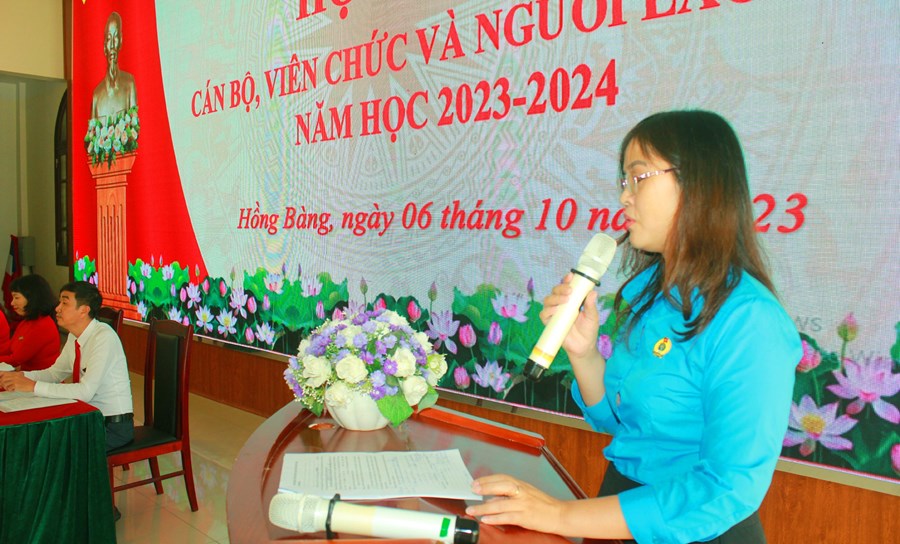 🍀Hội nghị diễn ra với tinh thần dân chủ, cởi mở, thẳng thắn, công khai, thể hiện ý thức trách nhiệm của mỗi Cán bộ, viên chức, người lao động. Tại Hội nghị, đồng chí Đoàn Thị Thu Hằng - Bí thư Đảng bộ- Hiệu trưởng nhà trường đã báo cáo đánh giá kết quả thực hiện nhiệm vụ năm học 2022-2023; triển khai kế hoạch thực hiện nhiệm vụ năm học 2023-2024 với những chỉ tiêu và biện pháp thiết thực phù hợp với tình hình cụ thể của nhà trường.