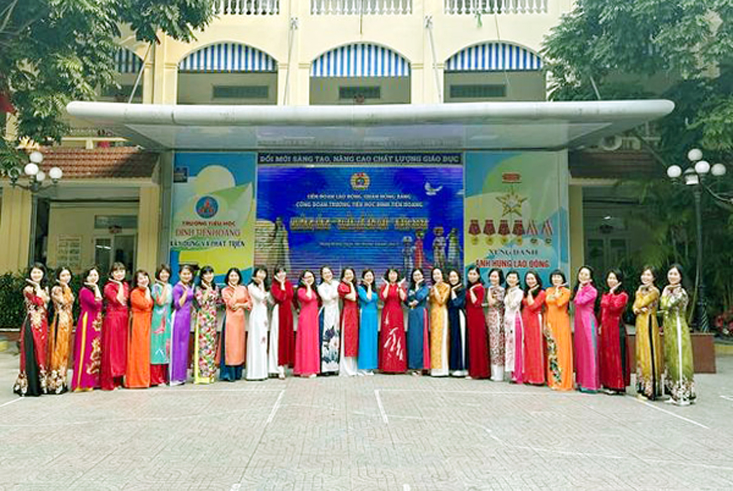 🌲Hưởng ứng “Tuần lễ Áo dài” năm 2023, Công đoàn trường TH Đinh Tiên Hoàng đã phát động tới tất cả các nữ giáo viên mặc áo dài trong những ngày đến lớp. Trong bộ áo dài thướt tha của giáo viên trường Tiểu học Đinh Tiên Hoàng đã lan toả vẻ đẹp của Áo dài Việt và nét đẹp duyên dáng, thanh lịch của nữ đoàn viên, CNVCLĐ thành phố