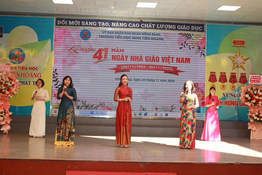 🌸 Trong niềm hân hoan, phấn khởi của cả nước chào mừng kỷ niệm 41 năm ngày Nhà giáo Việt Nam 20/11(20/11/1982 -20/11/2023). Sáng ngày 20/11 Trường tiểu học Đinh Tiên Hoàng long trọng tổ chức “Lễ kỷ niệm 41 năm ngày nhà giáo Việt Nam” năm học 2023 - 2024”