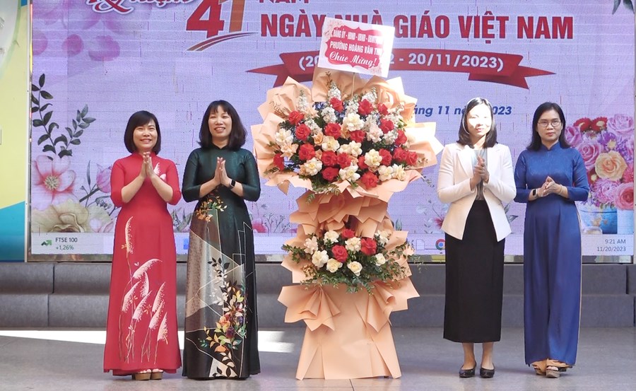 🍒 Tại buổi Lễ kỷ niệm, Đ/c Đoàn Thị Thu Hằng - Bí thư Đảng bộ - Hiệu trưởng nhà trường đã ôn lại truyền thống 41 năm ngày Nhà giáo Việt Nam; đồng thời nhấn mạnh: “Giáo dục là sự nghiệp quan trọng đối với sự phát triển của nhân loại”. Ngày Nhà giáo Việt Nam đã thực sự trở thành ngày hội của toàn dân trên khắp mọi miền của tổ quốc, thể hiện truyền thống đạo lý “uống nước nhớ nguồn”, “tôn sư trọng đạo” của dân tộc Việt Nam.