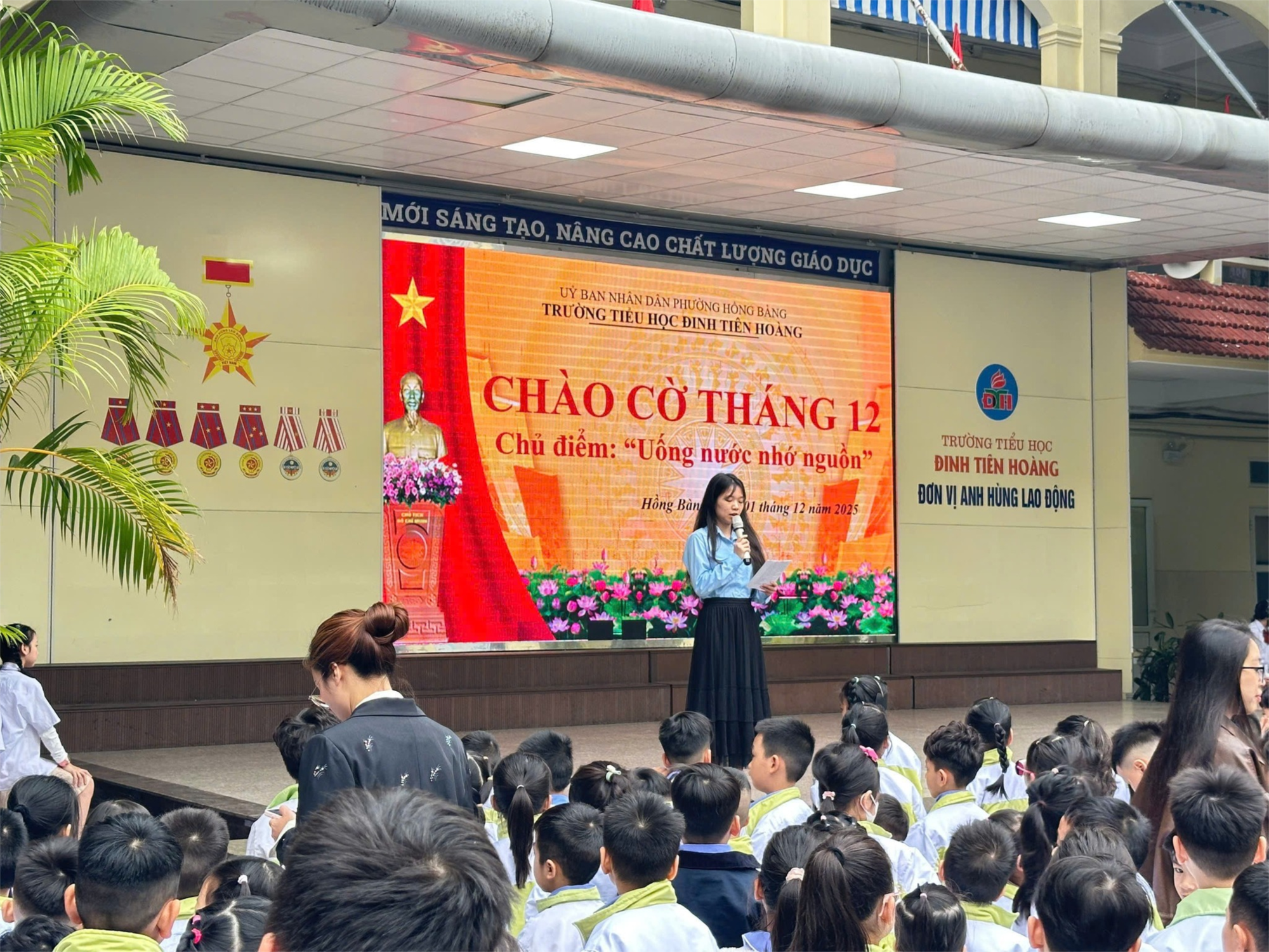 hực hiện chương trình Công tác Đội và phong trào thiếu nhi năm học 2025–2026, sáng ngày 01/12/2025, Ban phụ trách Liên đội trường Tiểu học Đinh Tiên Hoàng đã long trọng tổ chức "Lễ chào cờ tháng 12".
