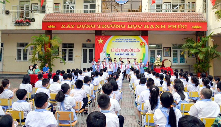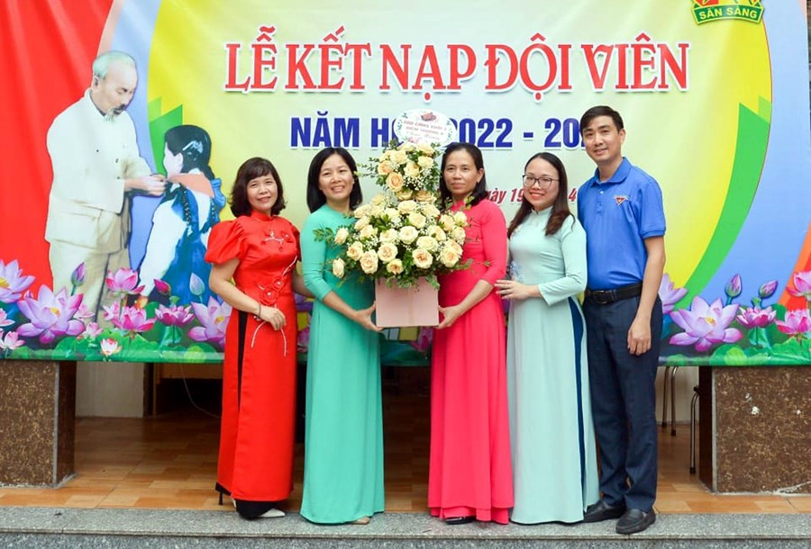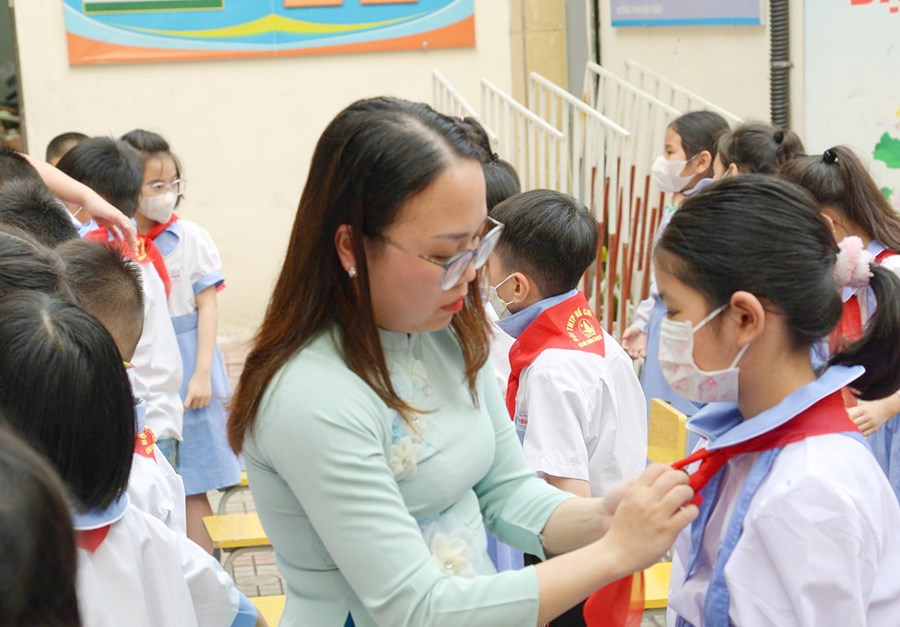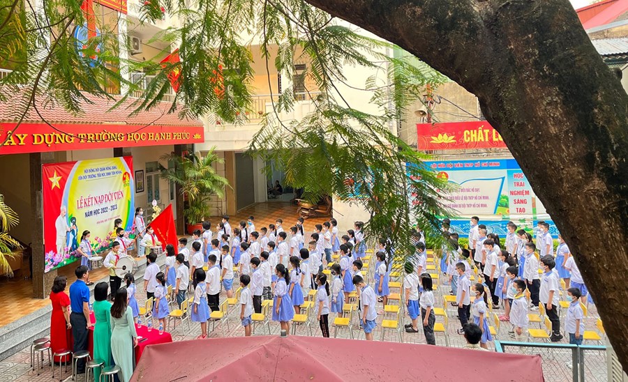 các thầy cô phụ trách khối 3 đã tổ chức "Lễ kết nạp Đội" cho 120 em học sinh khối 3.