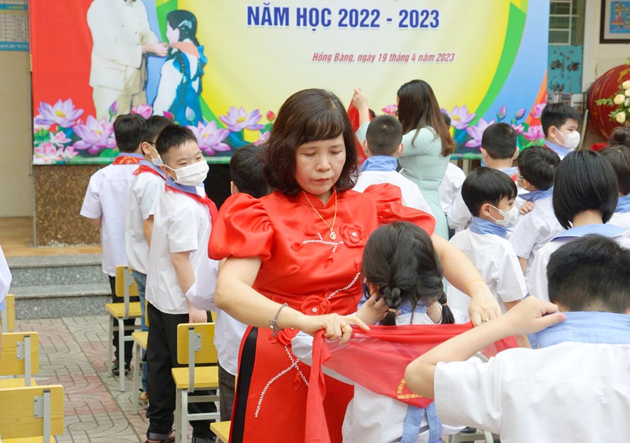 🌷 Được các thầy cô phụ trách trao chiếc khăn quàng đỏ thắm, bạn nào cũng tự nhủ phải cố gắng học tập, tu dưỡng thật tốt xứng đáng là Đội viên Đội TNTP Hồ Chí Minh xứng đáng là con ngoan, trò giỏi.