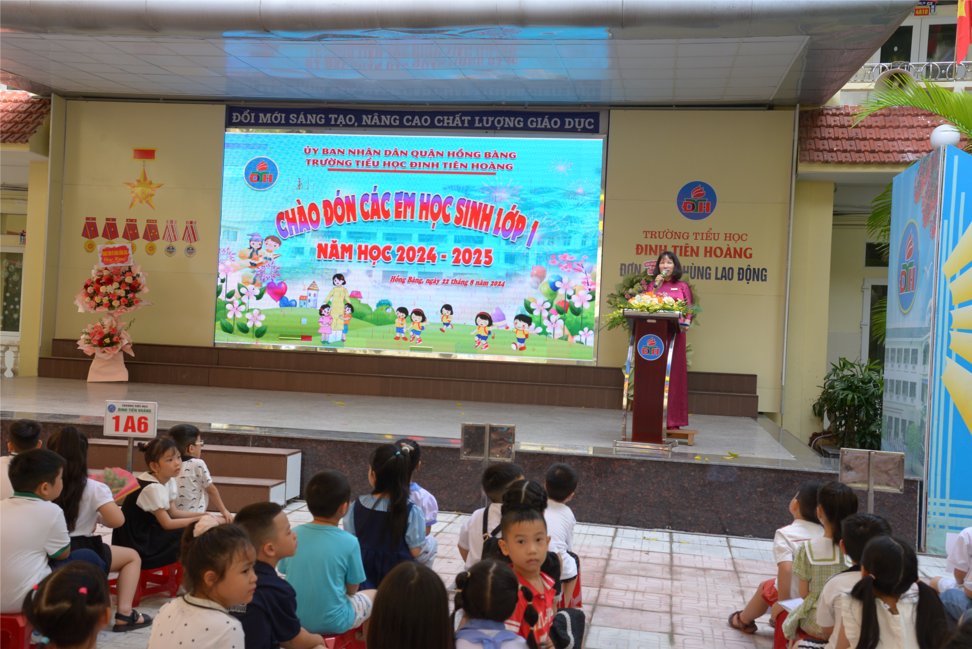 Ngày đầu tiên đi học, mẹ dắt tay đến trường. Em vừa đi vừa khóc, mẹ dỗ dành yêu thương... Ngày đầu như thế đó, cô giáo như mẹ hiền. Em bây giờ cứ ngỡ, cô giáo là cô tiên..." Lời bài hát "Ngày đầu tiên đi học" của nhạc sĩ Nguyễn Ngọc Thiện cứ nhẹ nhàng ngân lên trong tâm trí của các em học sinh, các bậc phụ huynh và các thầy cô giáo trường Tiểu học Đinh Tiên Hoàng trong buổi tựu trường đầy ý nghĩa này.
