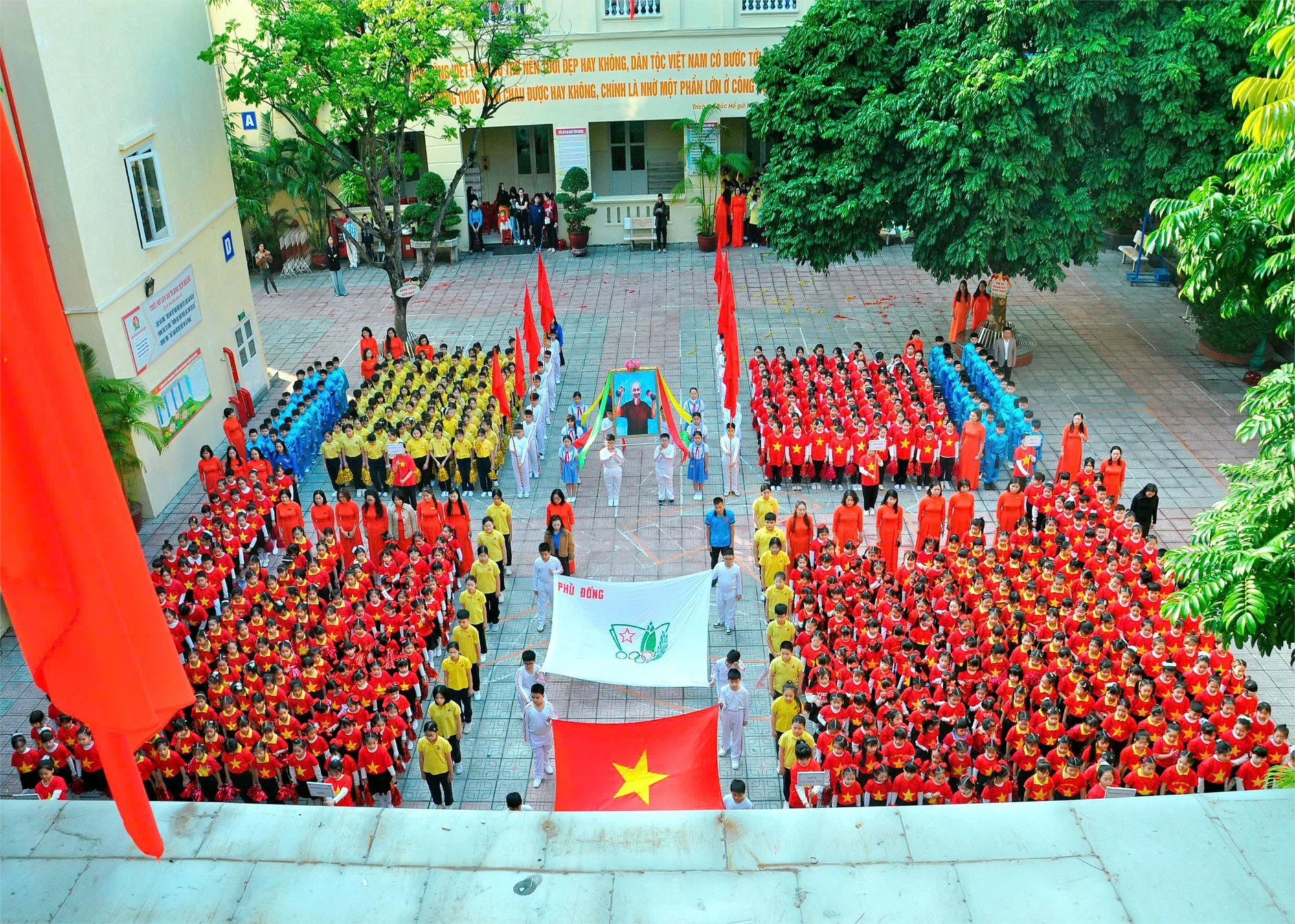 Màn đồng diễn mở đầu của của các em học sinh lớp 1 đáng yêu. Tiếp đến là phần biểu diễn của các em học sinh khối 2,3,5. Kết thúc chương trình khai mạc là màn xếp hình lá cờ Đảng mang hình ảnh búa liềm vàng trên nền đỏ cùng với liên khúc “Việt Nam ơi - Ngàn ước mơ Việt Nam - Thịnh vượng Viết Nam sáng ngời” tượng trưng cho sức mạnh đại đoàn kết dân tộc Việt Nam, của các tầng lớp nhân dân cùng nhau chiến đấu giành độc lập tự do bảo vệ nền hoà bình của nước nhà.