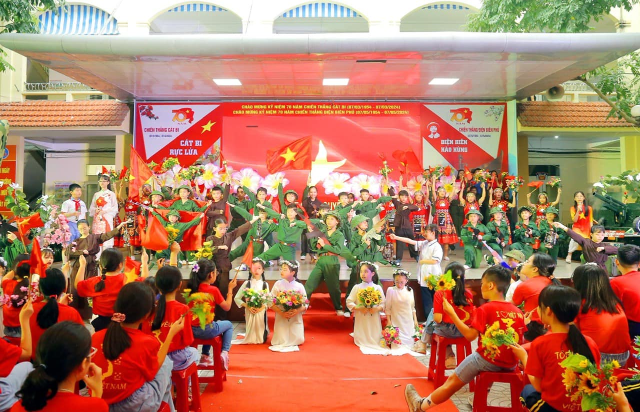 🎉🌺 Thực hiện Chương trình Công tác Đội và phong trào Thanh thiếu nhi năm học 2023-2024 của Liên đội trường tiểu học Đinh Tiên Hoàng; Chào mừng kỉ niệm 70 năm chiến thắng Cát Bi (07/3/1954-07/3/2024); Hướng đến kỷ niệm 70 năm chiến thắng Điện Biên Phủ (07/5/1954- 07/5/2024). Sáng ngày 12/4/2024 Liên đội trường TH Đinh Tiên Hoàng long trọng tổ chức chuyên đề Đội cấp thành phố “Từ Cát Bi rực lửa đến Điện Biên hào hùng” nhằm tạo không khí thi đua sôi nổi, tạo cơ hội cho các em thiếu nhi tại Liên đội được tìm hiểu về truyền thống lịch sử hào hùng của cha ông, và cũng từ đó tự tin thể hiện kỹ năng của mình trên sân khấu khi chính các em được đóng vai làm chiến sĩ 💐
