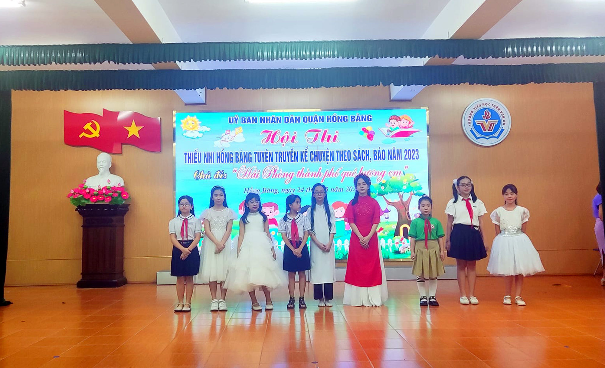 🌼 Sáng ngày 24 tháng 5 năm 2023, Phòng Giáo dục và Đào tạo phối hợp với Trung tâm văn hóa - thông tin Quận Hồng Bàng tổ chức Hội thi “Thiếu nhi Quận Hồng Bàng tuyên truyền, kể chuyện sách báo năm 2023". Với chủ đề "Hải phòng - Thành phố quê hương em ”, hội thi có sự góp mặt của 9 tiết mục đến từ 9 Trường Tiểu học trên địa bàn quận.