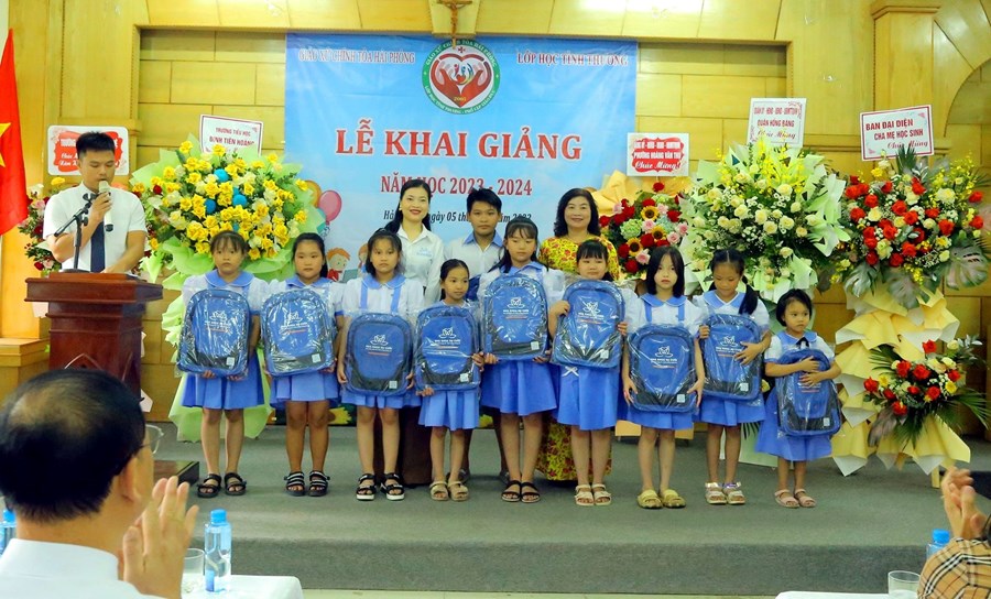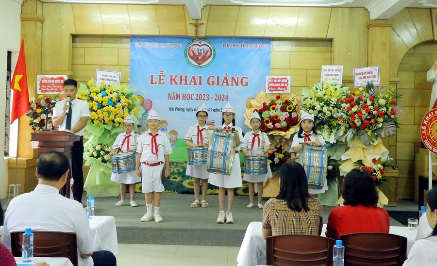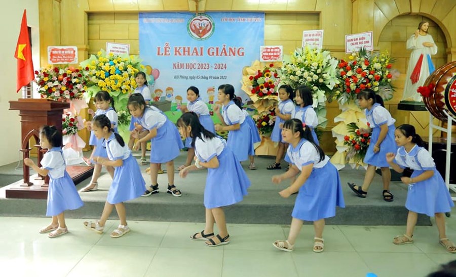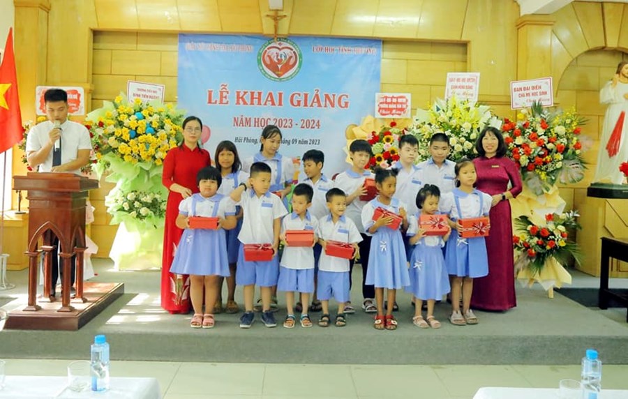 🌸 Chiều ngày 5/9/2023, được sự phân công của UBND quận Hồng Bàng, trường Tiểu học Đinh Tiên Hoàng cùng Ban quản lý lớp học tình thương Giáo xứ Chính tòa đã tổ chức Lễ Khai giảng năm học 2023 – 2024 cho 38 em học sinh tại lớp học tình thương.