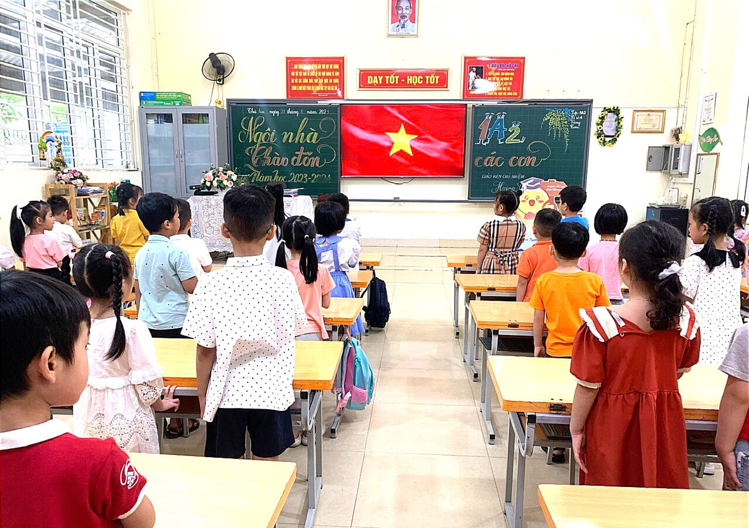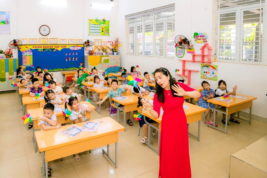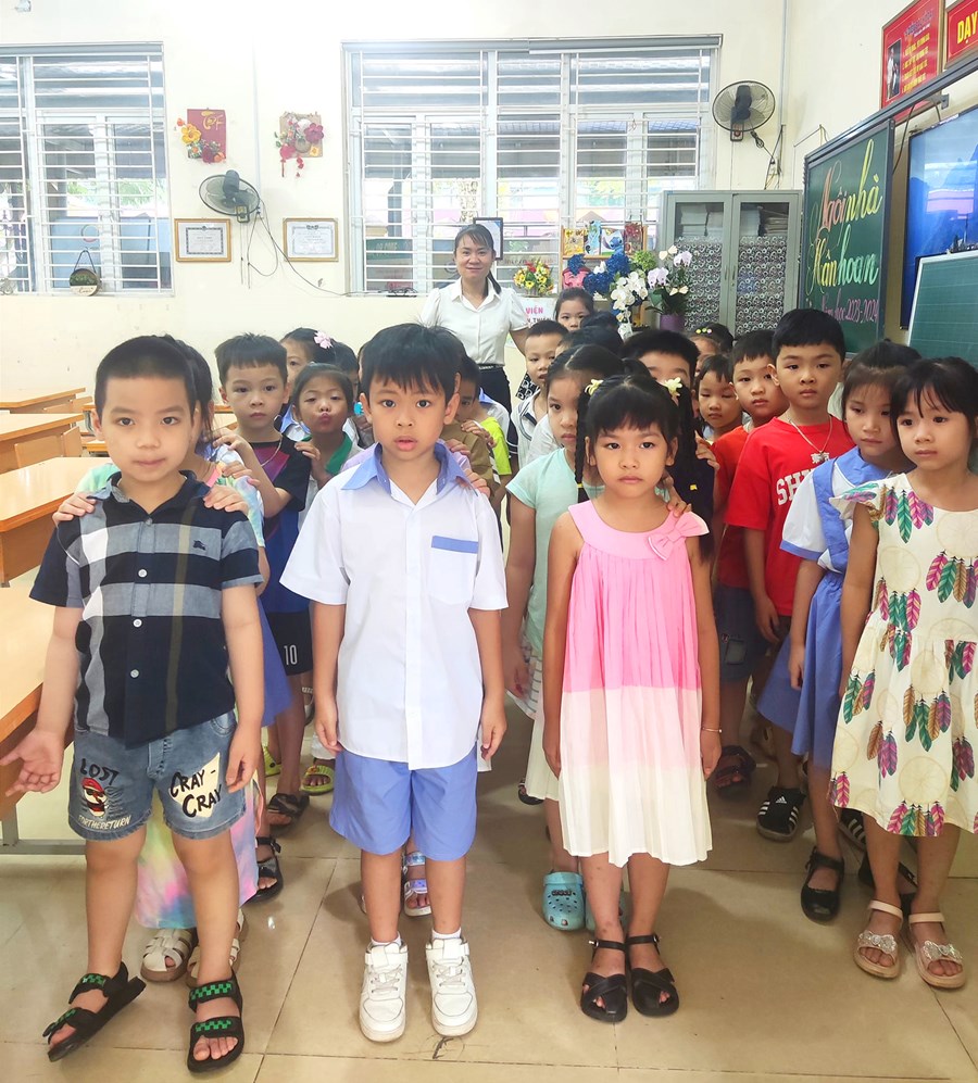 🌹 Ngay từ sáng sớm các em đã được các cô giáo của mình đón từ cổng trường dẫn vào lớp học. Bạn nào cũng rất háo hức, mong chờ đến lớp để được gặp cô giáo mới, gặp các bạn mới.