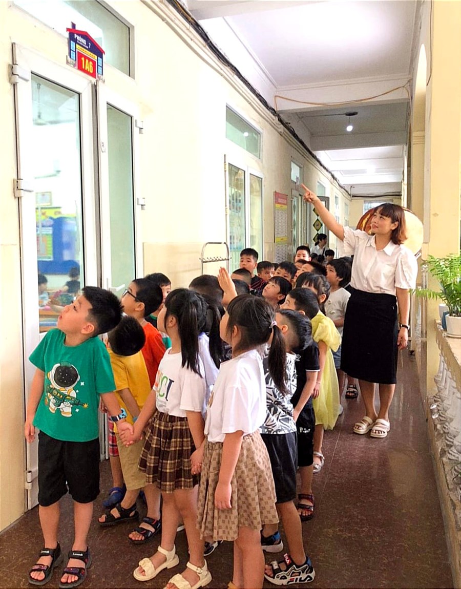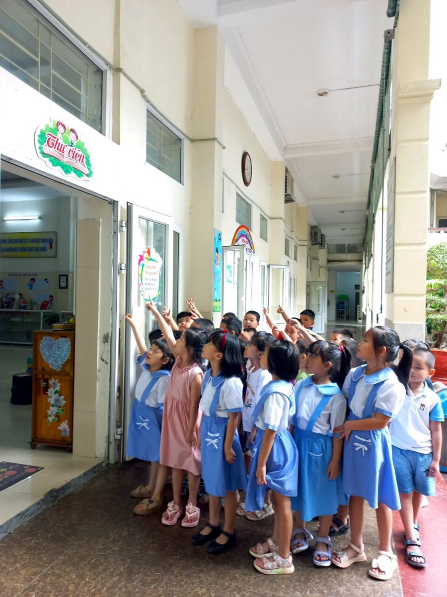 🍊Những ngày đầu tiên các con sẽ được cô giáo hướng dẫn tác phong nền nếp, cách xếp hàng ra vào lớp rồi cả cách giơ tay phát biểu và cách sắp xếp sách vở. Ngoài ra các bạn còn được học hát, được đi tham quan các phòng chức năng như: phòng Ban giám hiệu, phòng truyền thống, phòng y tế, phòng thư viện, bếp ăn bán trú, phòng ngoại ngữ, mỹ thuật, phòng stem và các lớp học… Bạn nào cũng rất vui vẻ, thích thú.