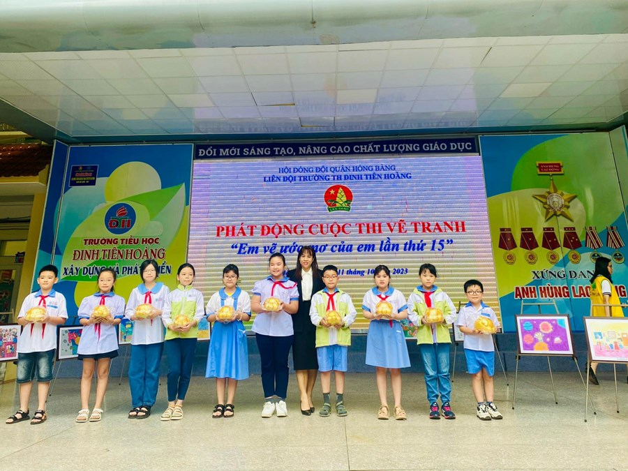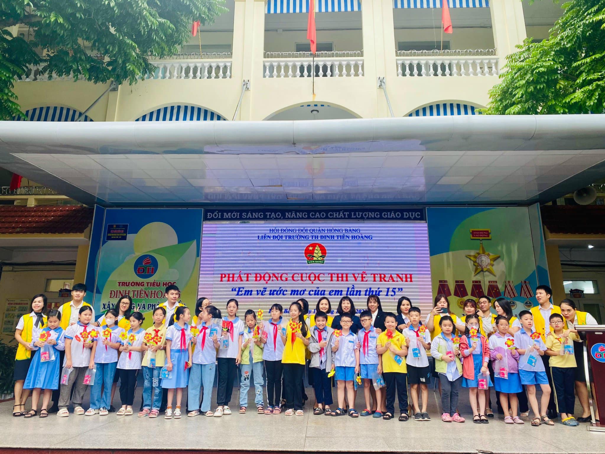 🌺🌺 Thực hiện chương trình Công tác Đội và phong trào thiếu nhi năm học 2023-2024 của Liên đội trường Tiểu học Đinh Tiên Hoàng. Sáng ngày 11 tháng 10 năm 2023, nhà trường và Liên đội đã phát động cuộc thi vẽ tranh với chủ đề “Em vẽ ước mơ của em” lần thứ 15 do báo Thiếu niên Tiền phong và Nhi Đồng tổ chức. Cuộc thi là một sân chơi bổ ích và lý thú, là dịp để các em học sinh thể hiện được tâm tư, ước mơ hoài bão của mình xây dựng mục tiêu phấn đấu của bản thân. Liên đội trường Tiểu học Đinh Tiên Hoàng tham gia cuộc thi với hơn 500 tác phẩm, Ban tổ chức đã lựa chọn và trao 10 món quà cho 10 tác phẩm xuất sắc cấp Liên đội.🥰💐💐