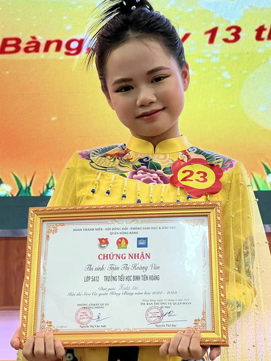 ❤ Em Trần Thị Hồng Vân - lớp 5A12, tham gia dự thi với bài hát "Lời tôi ru" và vinh dự giành giải Xuất sắc.