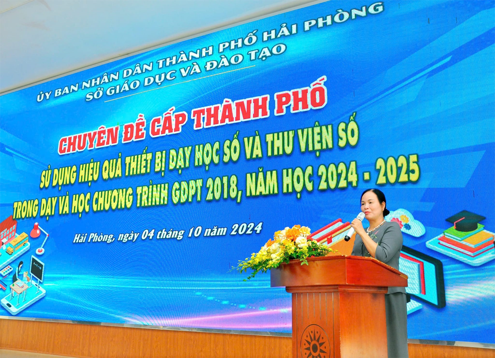 giám đốc Sở Giáo dục và Đào tạo; bà Lê Thị Vân - Phó chủ tịch Thường trực Uỷ ban nhân dân quận Hồng Bàng; lãnh đạo phòng Giáo dục các quận, huyện; đại diện Ban giám hiệu, giáo viên giảng dạy khối lớp 5, nhân viên thư viện các trường tiểu học trên địa bàn thành phố.