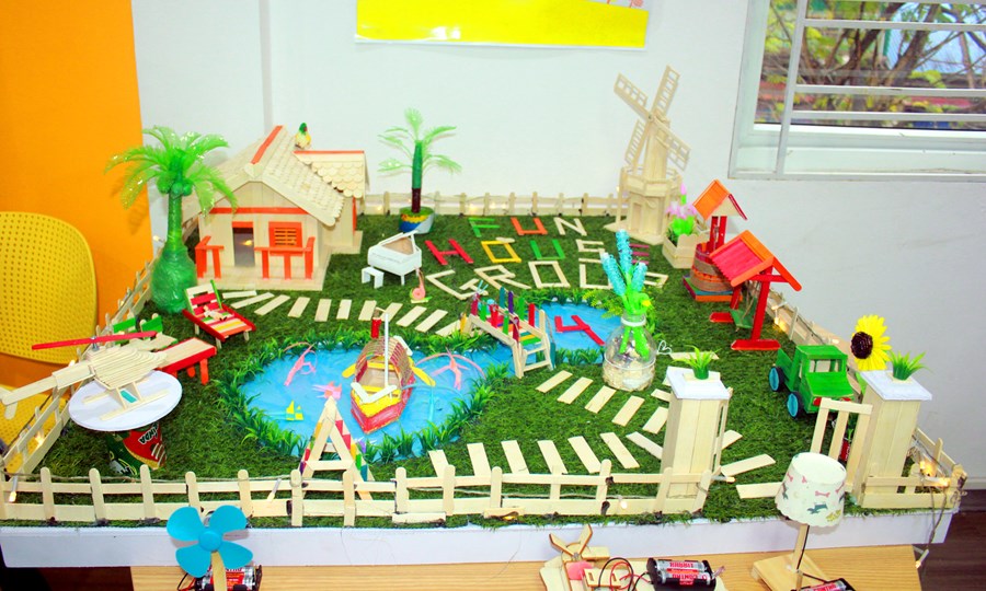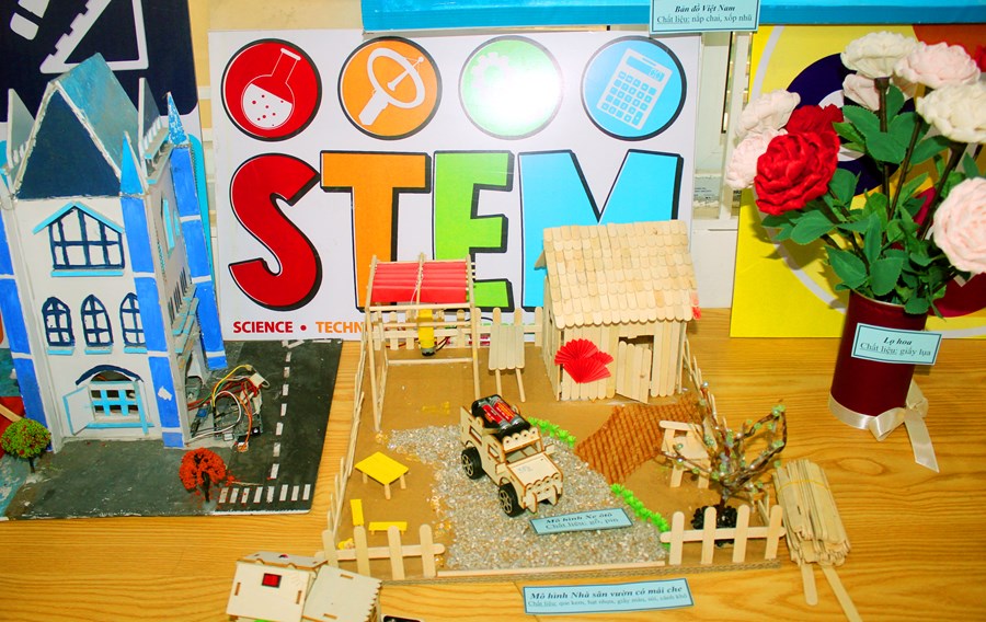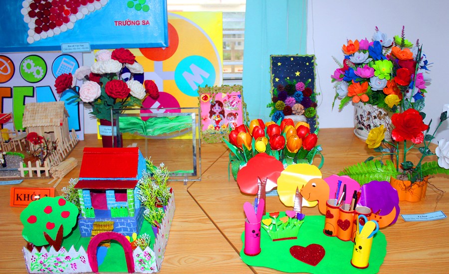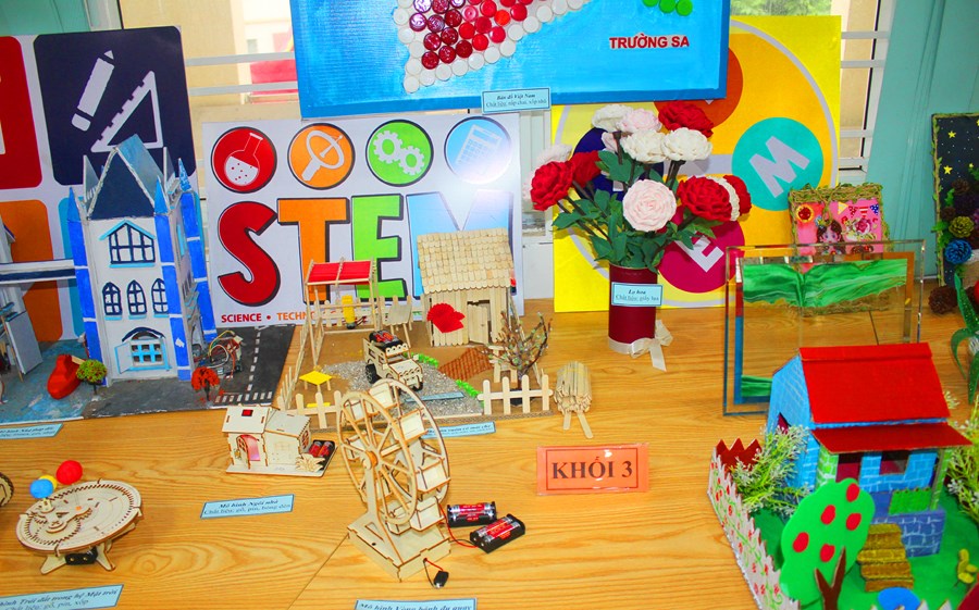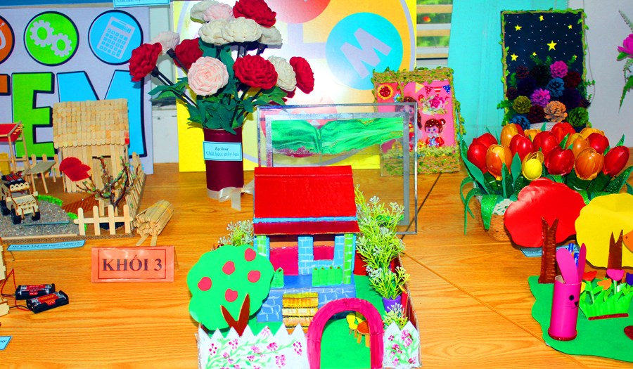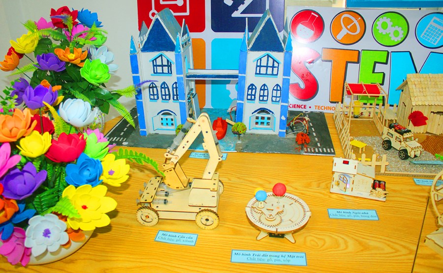 🌲Chương trình Ngày hội STEM diễn ra với 2 phần thi: Thi sản phẩm STEM và thi sáng tạo robot. Ở phần thi sản phảm STEM, các khối lớp đã mang đến ngày hội 07 sản phẩm , gồm các đề tài thuộc các lĩnh vực khách nhau, các mô hình đa dạng, thể hiện nhiều ý tưởng sáng tạo có tính ứng dụng cao, gần gũi với cuộc sống của các em học sinh và thầy cô bằng cách tận dụng các vật liệu tái chế như: rác thải hũu cơ, túi nilon, vỏ chai nhựa, để tái chế, làm thành các đồ vật, vật dụng thiết yếu, các món ăn có trong gia đình, cuộc sống cũng như trong học tập.