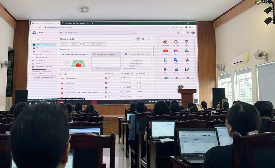 ♦Buổi tập huấn do đồng chí Đoàn Thị Thu Hằng - Hiệu trường nhà trường, các đồng chí trong Ban Giám hiệu, giáo viên Tin học trực tiếp hướng dẫn.