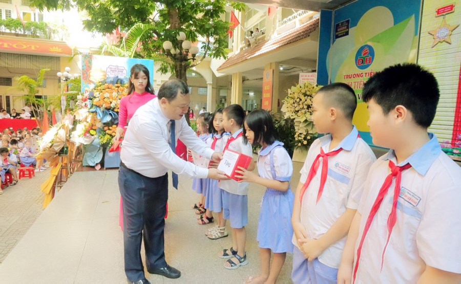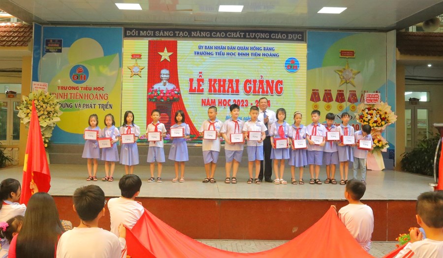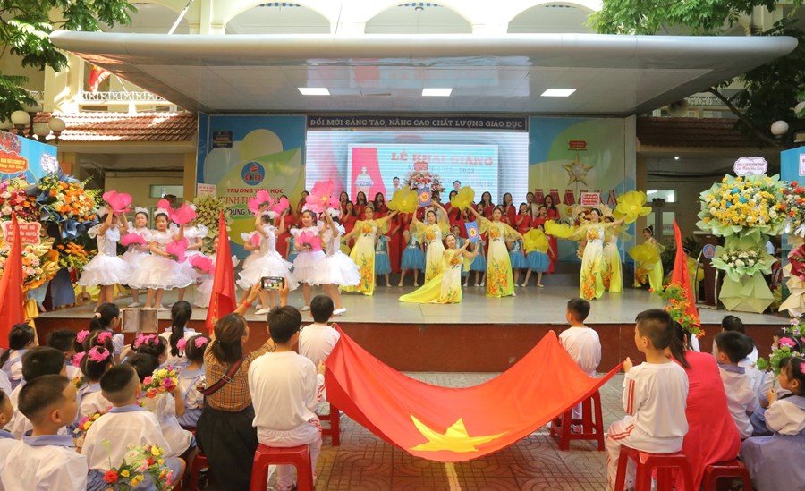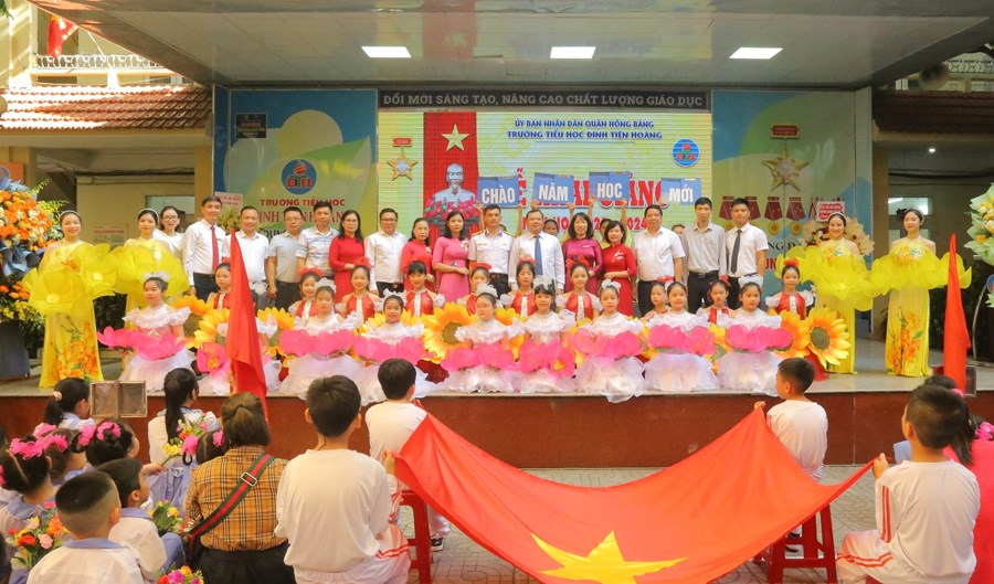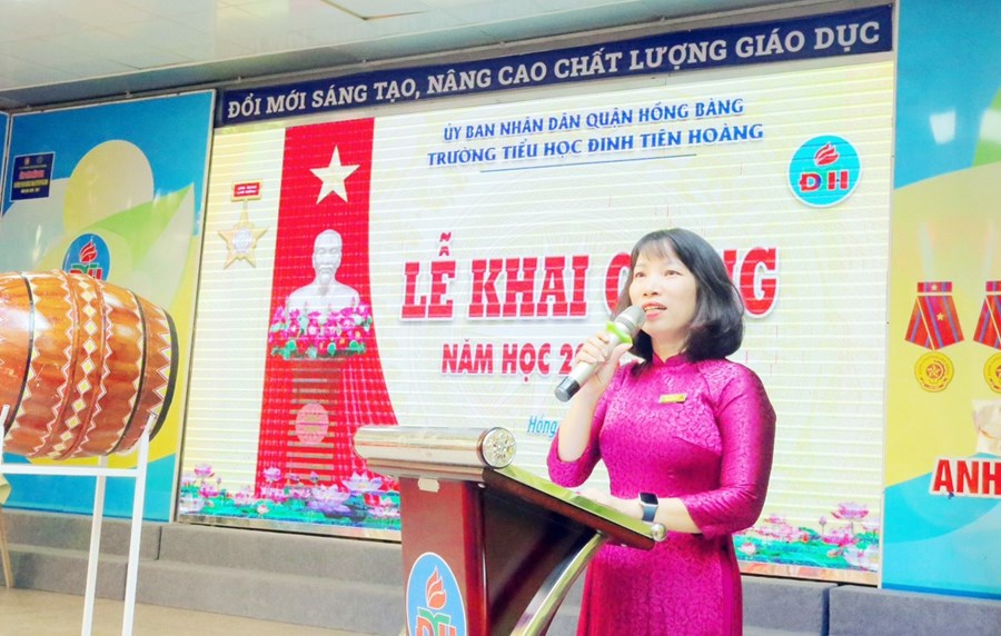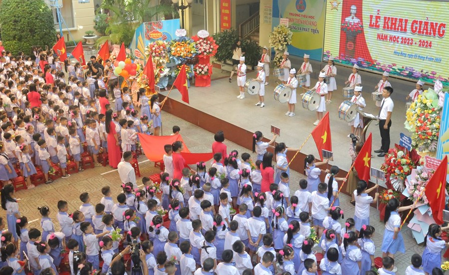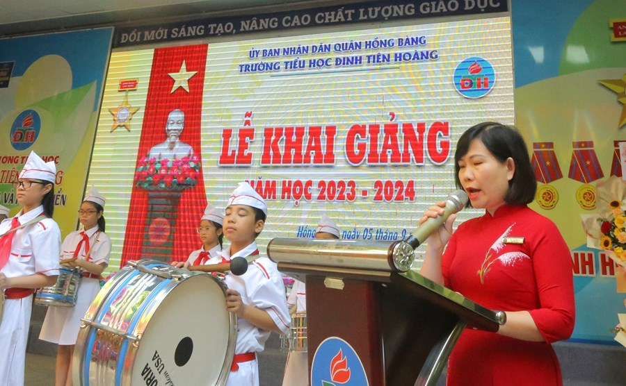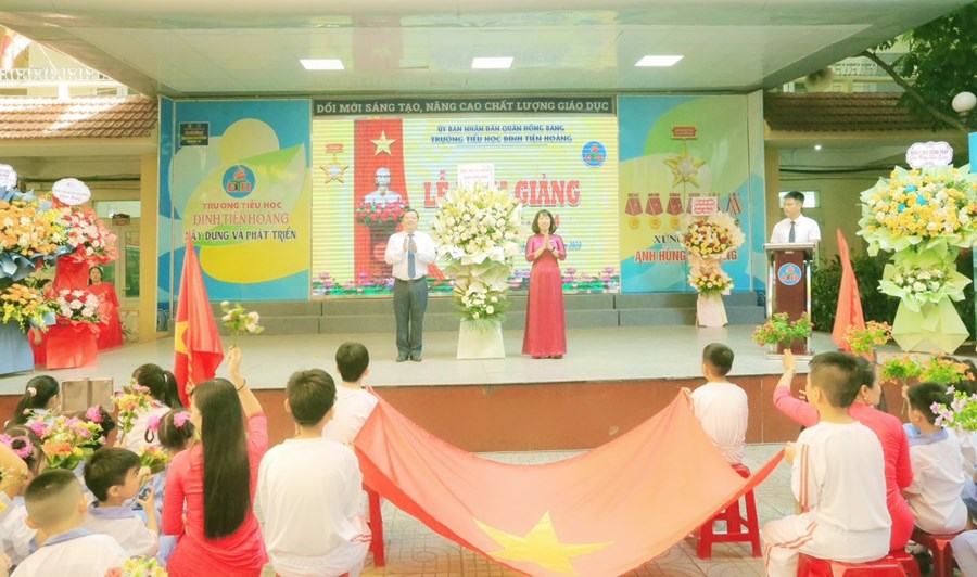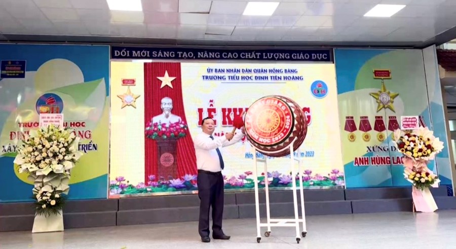 🌸 Tại buổi lễ, thầy và trò nhà trường vinh dự được bác Đỗ Việt Hưng - Phó Bí thư TT Quận uỷ, Chủ tịch HĐND quận Hồng Bàng - đánh hồi trống khai trường năm học mới. Tiếng trống trường thật thiêng liêng, thôi thúc bao tâm hồn, khơi dậy nguồn tri thức, đánh dấu thời khắc mở đầu của một năm học mới, mang theo mơ ước của các em học sinh, niềm hứng khởi, tâm huyết của các thầy giáo, cô giáo.