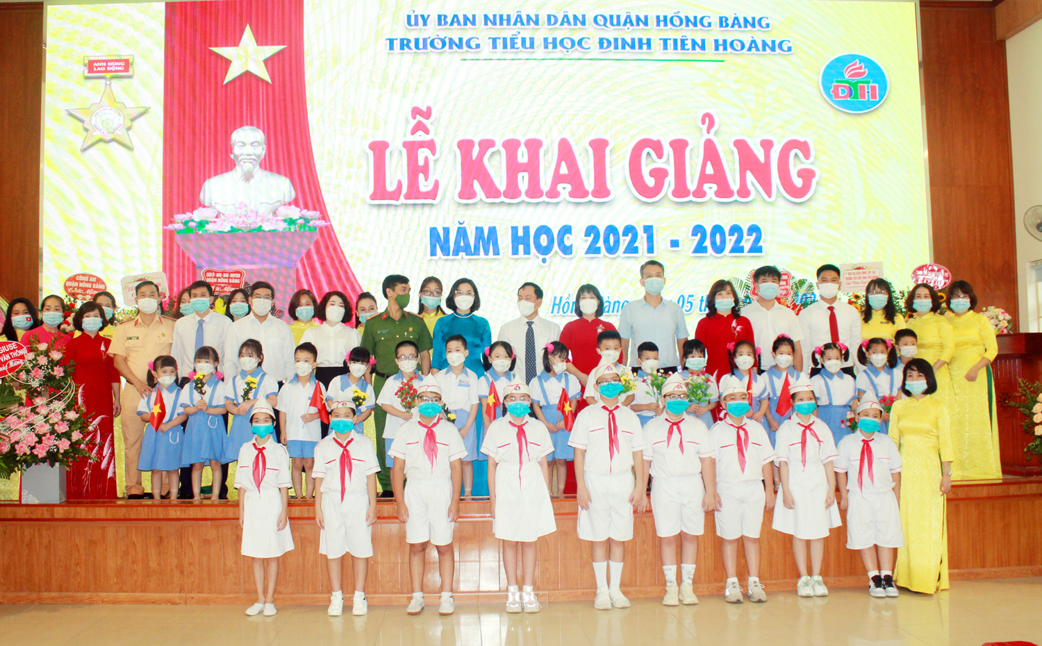 Đúng 7 giờ 30 phút, sáng ngày 05/9, trường Tiểu học Đinh Tiên Hoàng long trọng tổ chức Lễ Khai giảng năm học 2021-2022. Buổi lễ được tổ chức theo hình thức trực tiếp với 401 học sinh khối lớp 1 và trực tuyến với học sinh khối 2,3,4,5.