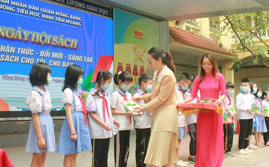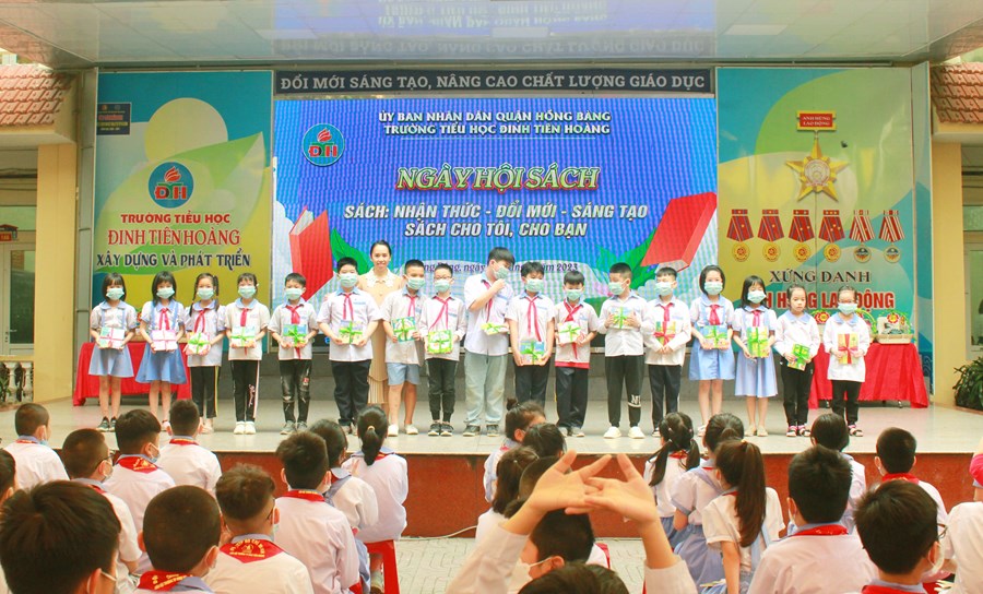 🌷Cũng trong khuôn khổ của ngày hội, nhà trường đã tặng sách cho 20 em học sinh có hoàn cảnh khó khăn và trao thưởng cho các em học sinh đạt thành tích xuất sắc trong “Hội thi vẽ tranh theo sách báo năm 2023, với chủ đề: Hải Phòng - Tỏa sáng miền cửa biển”