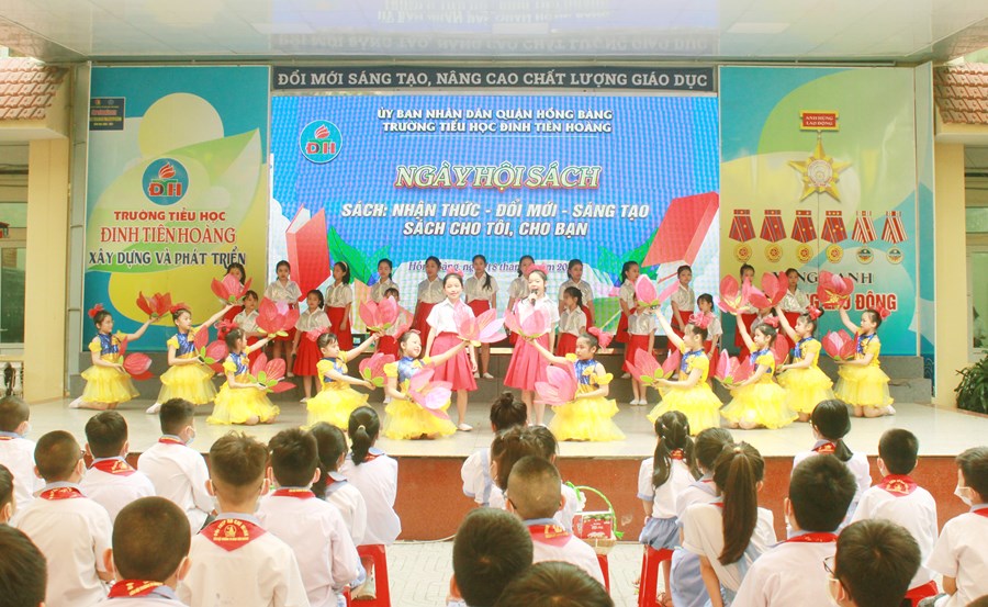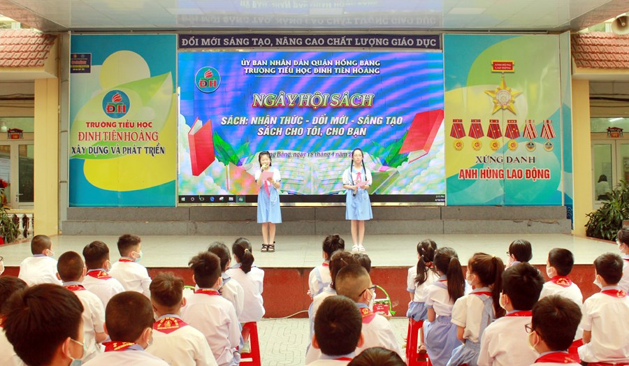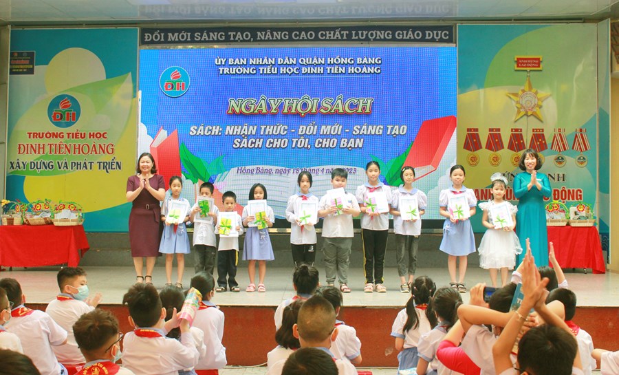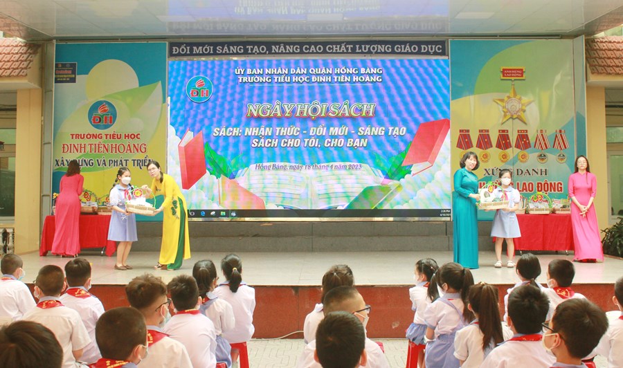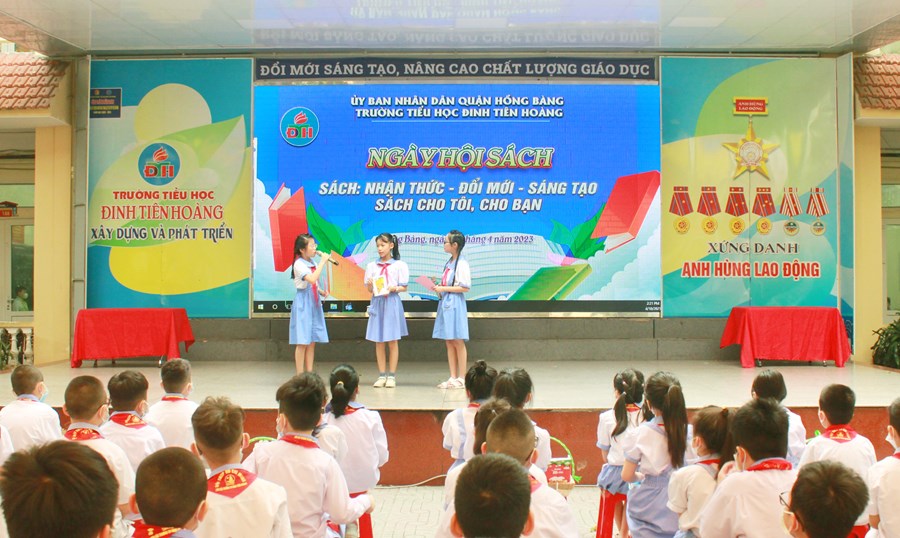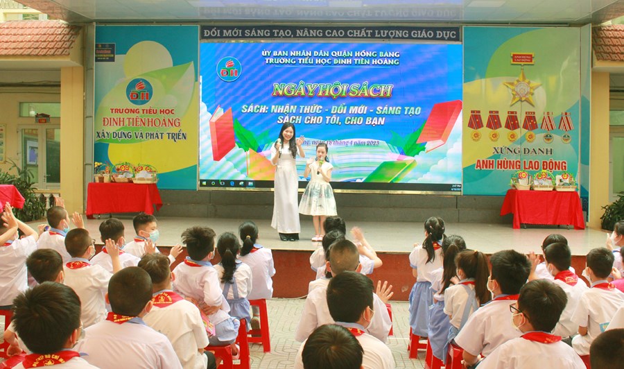 🍒Hưởng ứng “Ngày sách và Văn hóa đọc Việt Nam lần thứ 2 năm 2023” trên địa bàn quận Hồng Bàng, chiều ngày 18/4/2023 trường Tiểu học Đinh Tiên Hoàng tưng bừng tổ chức “Ngày hội sách” với thông điệp “Sách - nhận thức - Đổi mới- Sáng tạo; Sách cho tôi, cho bạn”