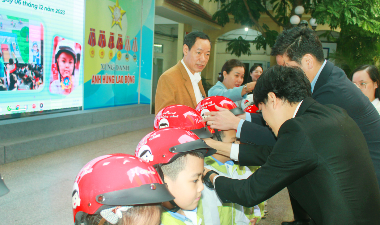 👉 Thực hiện công văn số 5609 ngày 10/10/2023 của Bộ Giáo dục và Đào tạo về việc triển khai Chương trình trao tặng mũ bảo hiểm cho học sinh lớp 1 năm học 2023 - 2024 với chủ đề “Giữ trọn ước mơ”; Công văn số 6959 ngày 11/10/2023 của Văn phòng Ủy ban nhân dân thành phố về việc phối hợp tổ chức trao tặng mũ bảo hiểm cho học sinh lớp 1 năm 2023. Sáng ngày 6/12/2023, Sở GD&ĐT Hải Phòng tổ chức Chương trình Trao tặng mũ bảo hiểm cho học sinh lớp 1 với chủ đề “Giữ chọn ước mơ” tại trường Tiểu học Đinh Tiên Hoàng. Đến dự chương trình có các quý vị đại biểu và khách quý: