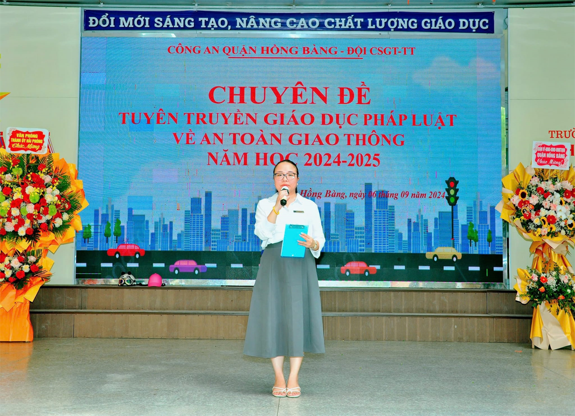 Sáng ngày 06/9/2024 Công an Quận Hồng Bàng phối hợp với trường Tiểu học Đinh Tiên Hoàng tổ chức chuyên đề “Tuyên truyền giáo dục pháp luật về An toàn giao thông, năm học 2024 - 2025” tới CBGVNV và các em HS