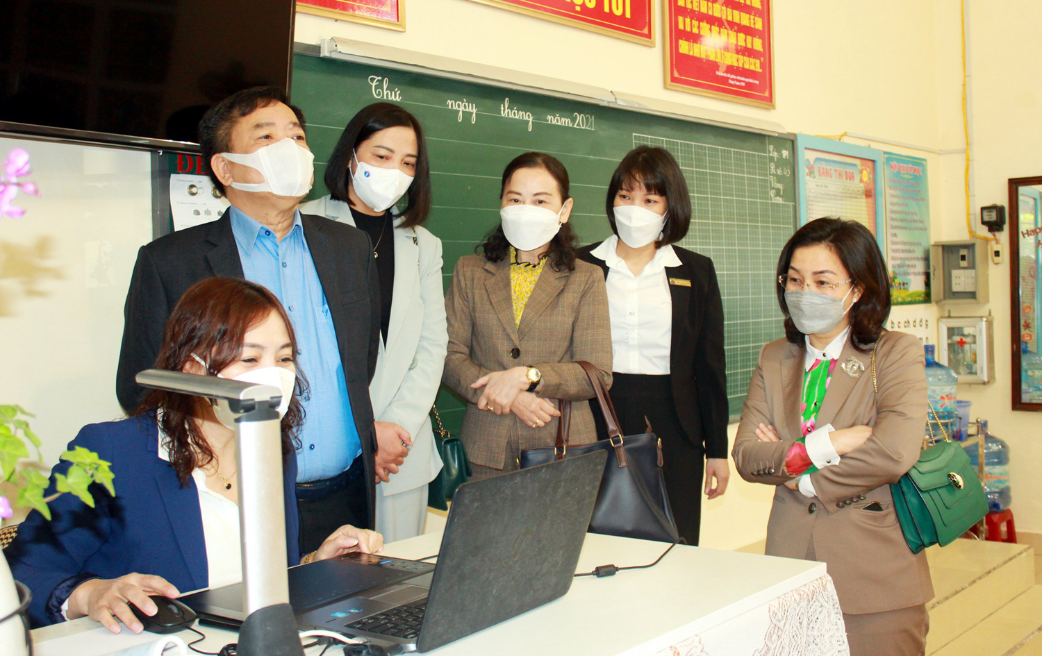 Tại buổi kiểm tra, đ/c Vũ Văn Trà - Phó Giám đốc Sở Giáo dục và Đào tạo đã đánh giá cao việc thích ứng dạy học trực tuyến trong tình hình dịch bệnh Covid-19 của nhà trường.