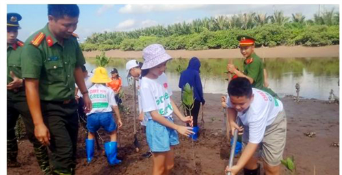 🍓 Dự án của các em triển khai gồm 4 bước: FEELING - Cảm nhận, IMAGE - tưởng tượng, DO - hành động, SHARE - chia sẻ. Ở bước thứ 3, hành động cụ thể của nhóm là thực hiện trồng 1000 cây sú, vẹt, mắm tại rừng ngập mặn xã Phù Long.