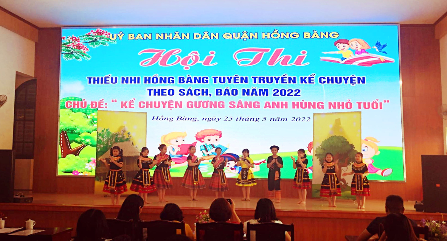 Sáng ngày 25 tháng 5 năm 2022, Phòng Giáo dục và Đào tạo phối hợp với Trung tâm văn hóa - thông tin Quận Hồng Bàng tổ chức Hội thi “Thiếu nhi Quận Hồng Bàng tuyên truyền, kể chuyện sách báo năm 2021". Với chủ đề “Kể chuyện gương anh hùng nhỏ tuổi”, hội thi có sự góp mặt của 9 tiết mục đến từ 9 Trường Tiểu học trên địa bàn quận.