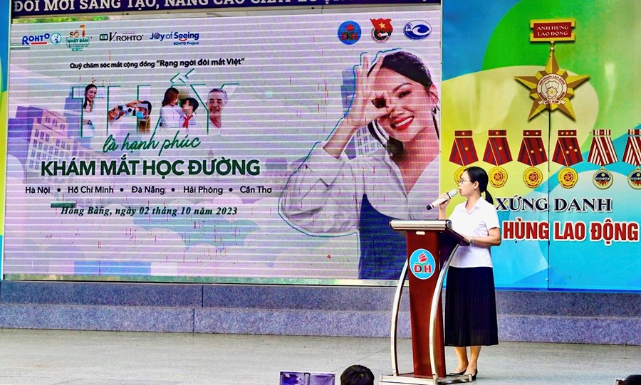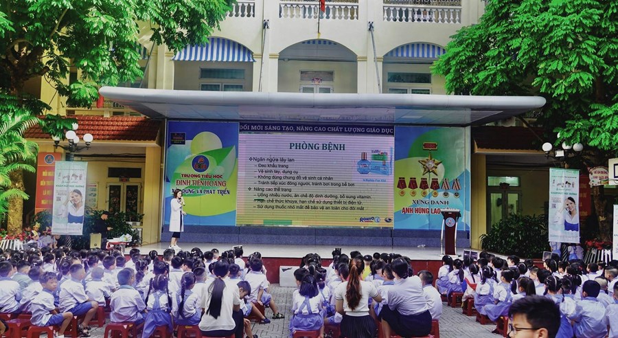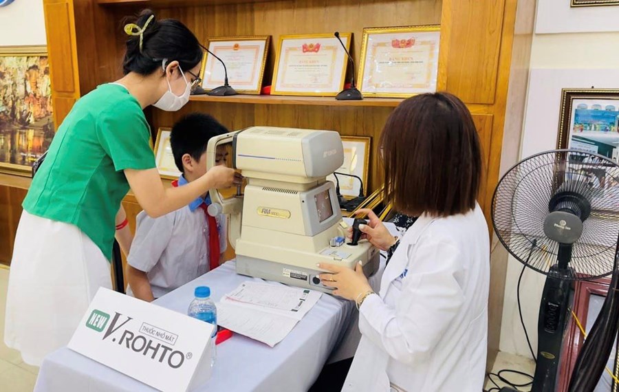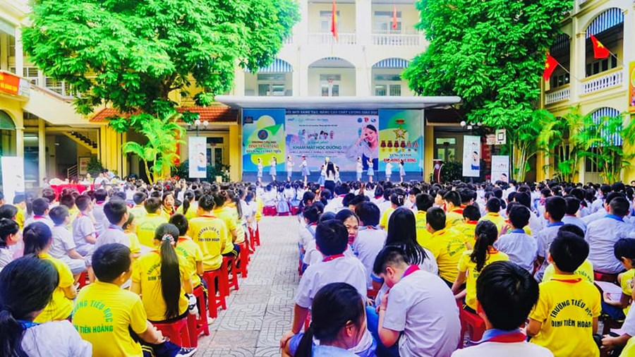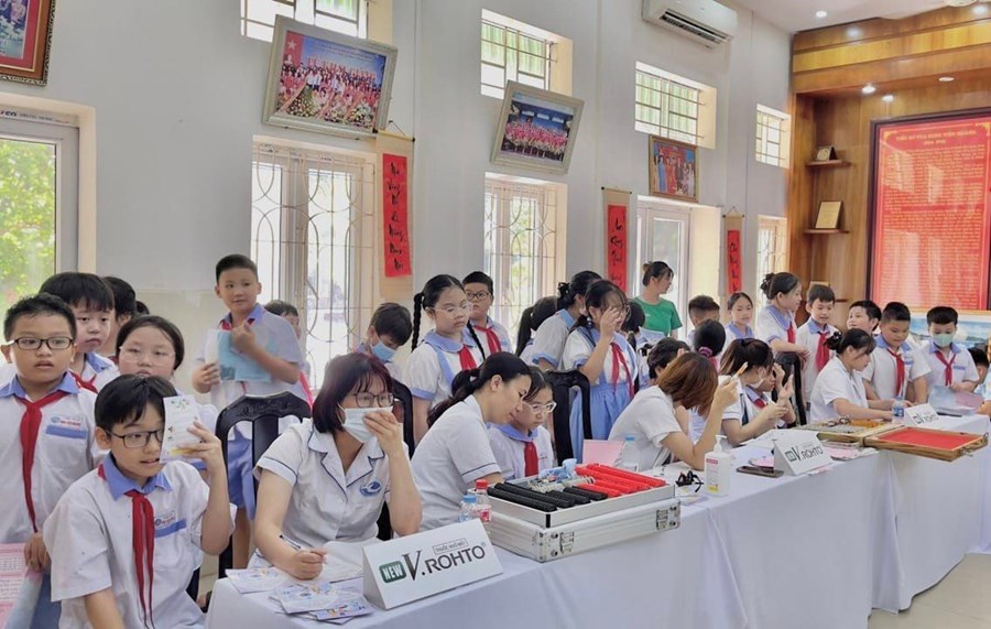 🌲Thực hiện Chương trình công tác Đội và phong trào thiếu nhi năm học 2023-2024 của trường TH Đinh Tiên Hoàng, ngày 02/10/2023 trường Tiểu học Đinh Tiên Hoàng phối hợp với đoàn Bác sĩ bệnh viện mắt Hà Nội cùng nhãn hàng thuốc nhỏ mắt V.Rohto tổ chức chương trình “Khám mắt học đường” cho các em học sinh toàn trường.