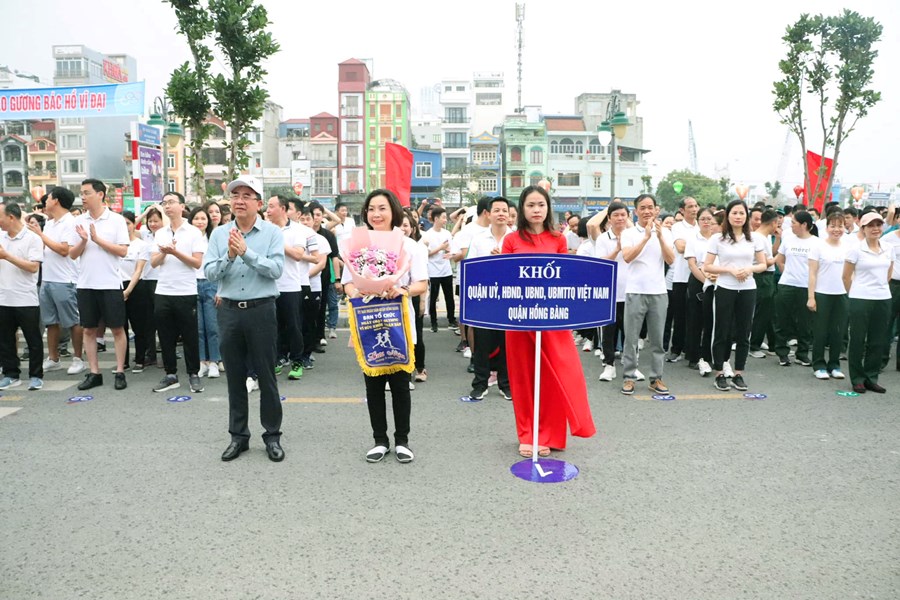 🏃 Sáng ngày 25/3/2023, ngành Giáo dục và Đào tạo quận Hồng Bàng đã hưởng ứng tham gia nhiệt tình với sự góp mặt đông đủ của các đồng chí lãnh đạo, chuyên viên Phòng GDĐT và gần 200 cán bộ, giáo viên các trường Mầm non, Tiểu học, THCS trong toàn quận. Học tập và làm theo tấm gương đạo đức Hồ Chí Minh, cán bộ, công chức, viên chức ngành Giáo dục và Đào tạo Hồng Bàng không ngừng tham gia các phong trào thể dục thể thao, rèn luyện thân thể theo gương Bác Hồ.