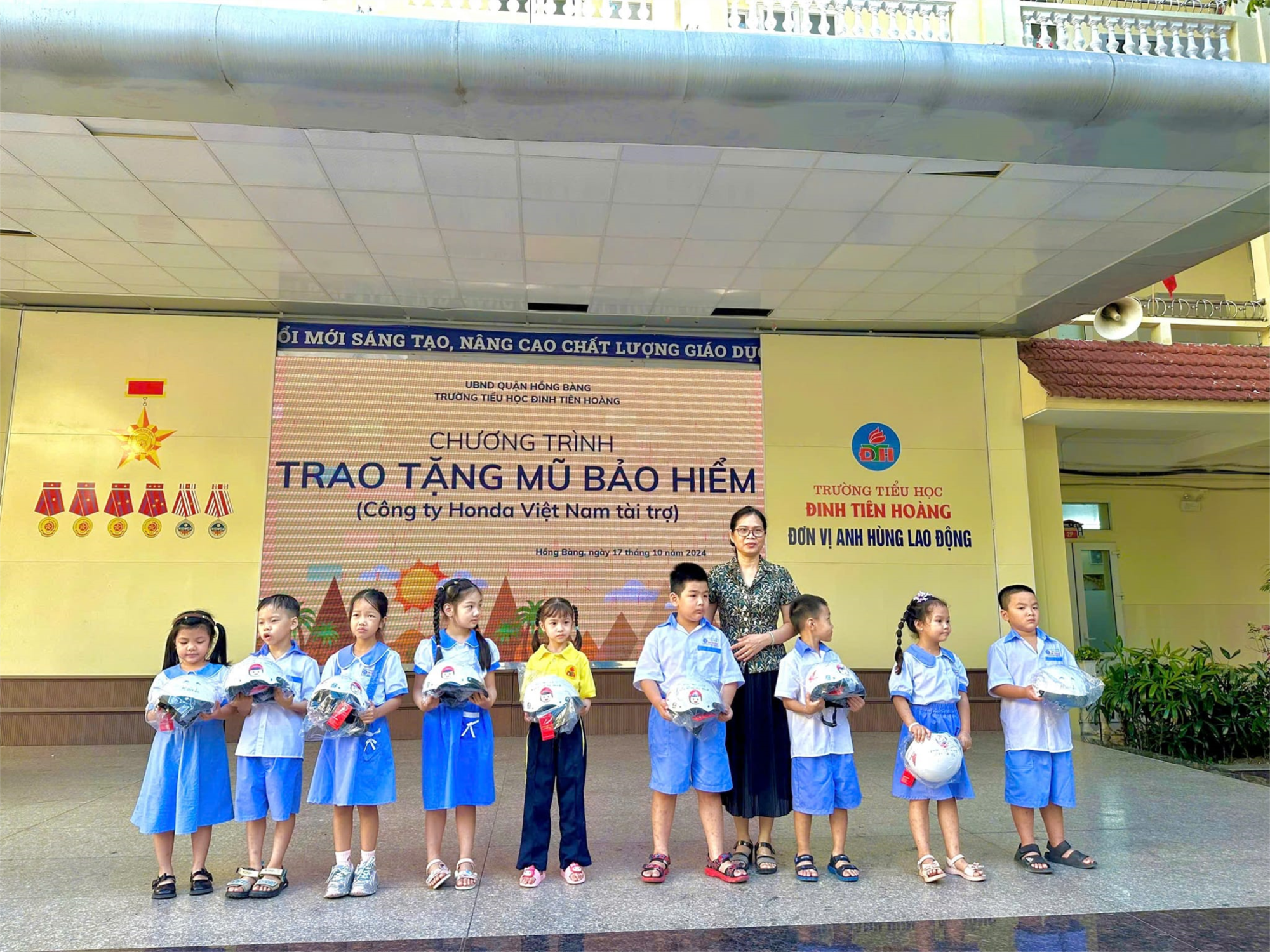 Chương trình trao tặng mũ bảo hiểm cho học sinh lớp 1 năm học 2024-2025 do Công ty Honda Việt Nam tài trợ.