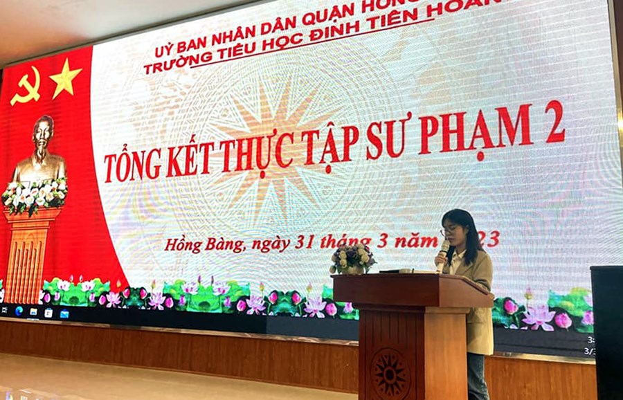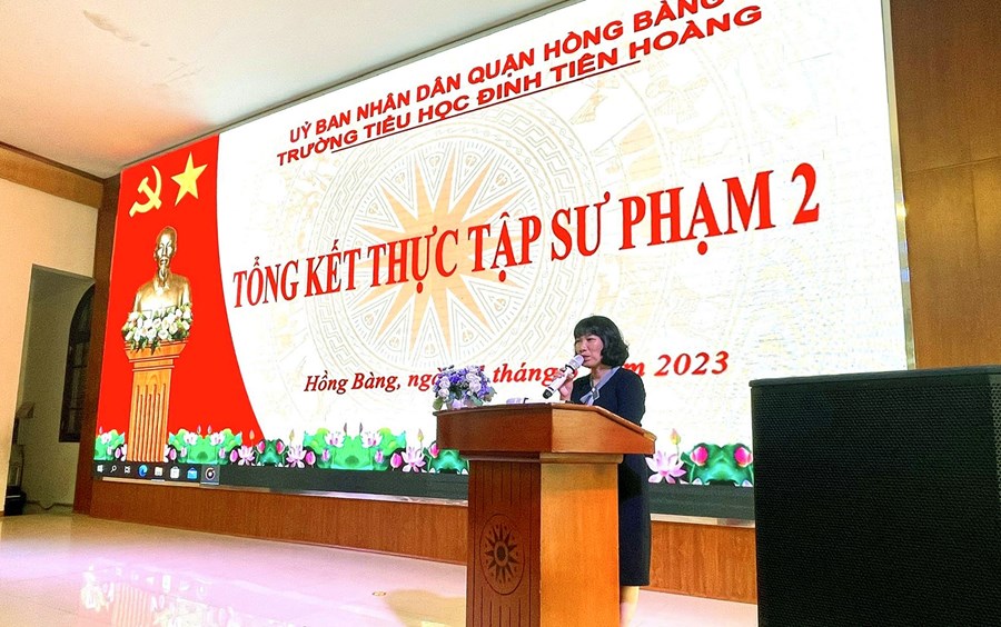 ❤️ Sau thời gian thực tập tại trường TH Đinh Tiên Hoàng, đoàn thực tập đã tổ chức buổi tổng kết đợt thực tập. Tại buổi tổng kết, Cô giáo Đoàn Thị Thu Hằng - Bí thư Đảng bộ, Hiệu trưởng nhà trường đã nhận xét và rút kinh nghiệm về các nội dung thực tập của các em. Kết quả thực tập của sinh viên được nhà trường đánh giá cao, thể hiện rất rõ sự nỗ lực của các giáo sinh trong thời gian thực tập tại trường.