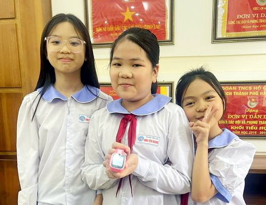 em là những tấm gương sáng về lòng trung thực. Trong giờ ra chơi sáng thứ 4 ngày 10 tháng 5 năm 2023, các em đã phát hiện và nhặt được một chiếc đồng hồ thông minh, các em đã chủ động gặp và gửi điện thoại cho thầy Tổng phụ trách để trả lại người mất là bạn Nguyễn Hà Linh lớp 3A5